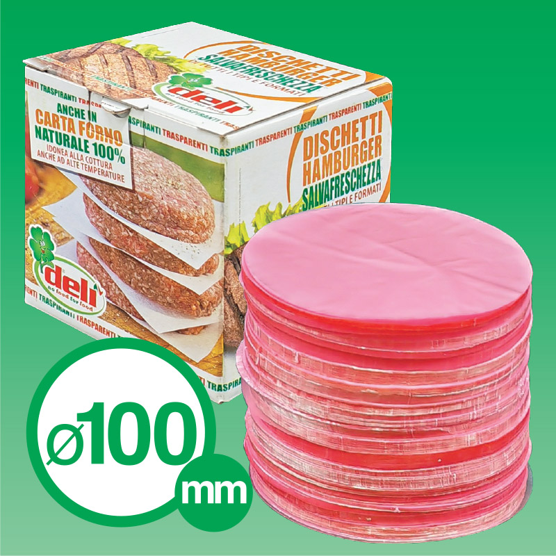 Dischetti per hamburger in rosafol trasparente diametro 100.