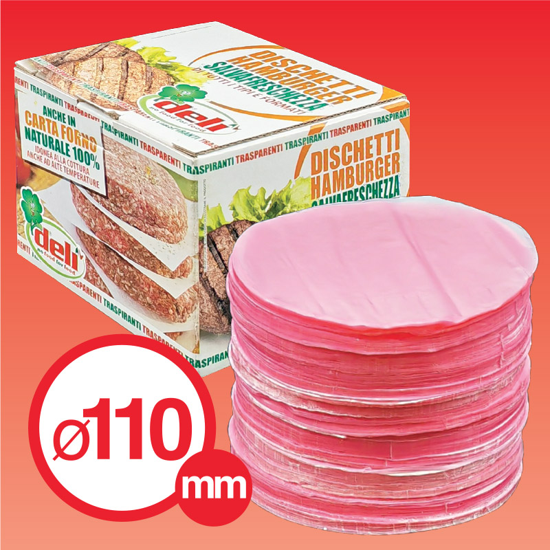 Dischetti per hamburger in rosafol trasparente diametro 110.