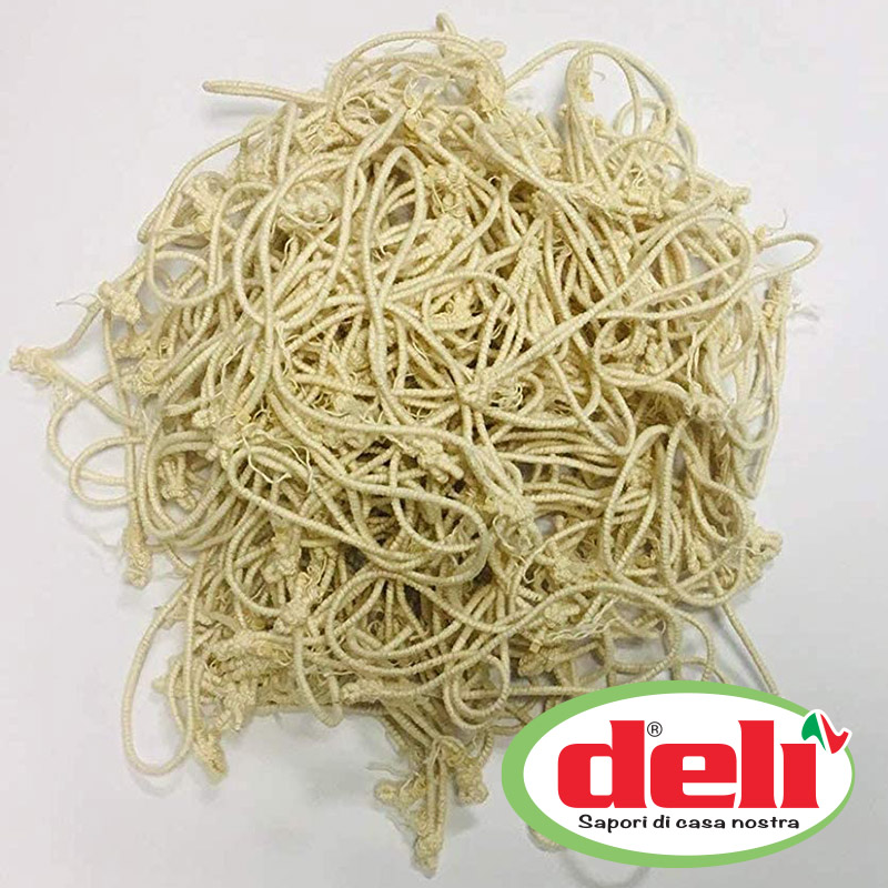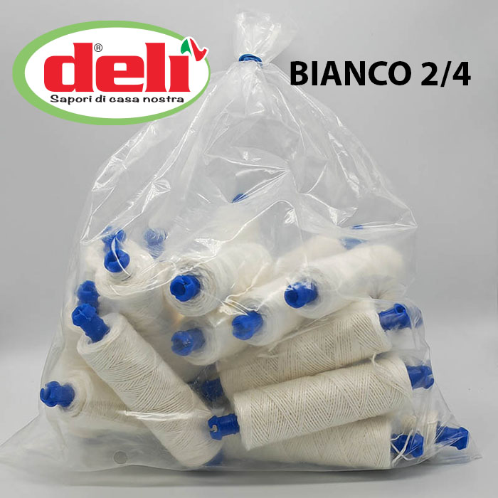 Spago a spolette cilindriche di colore bianco 2/4 utilizzato per legare salumi ed insaccati come salsicce, salami ecc.Confezioni da 1 KG.