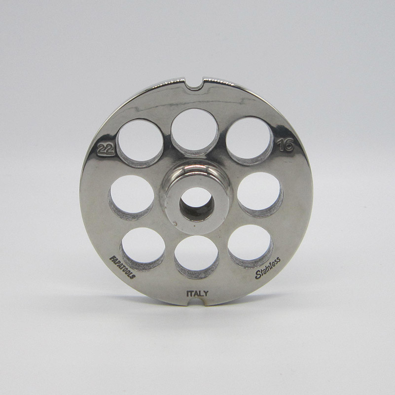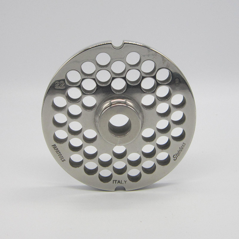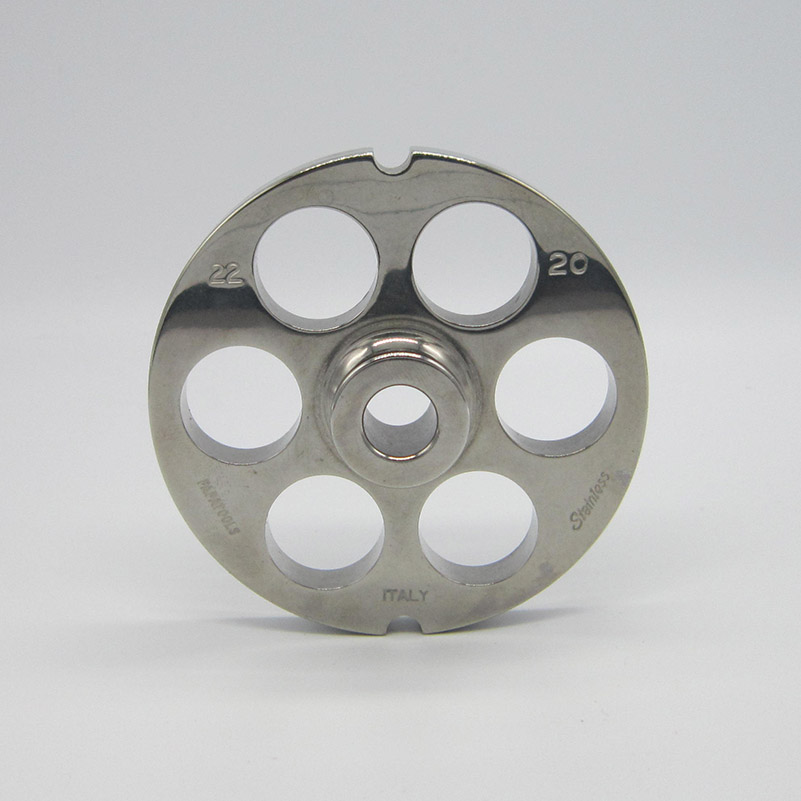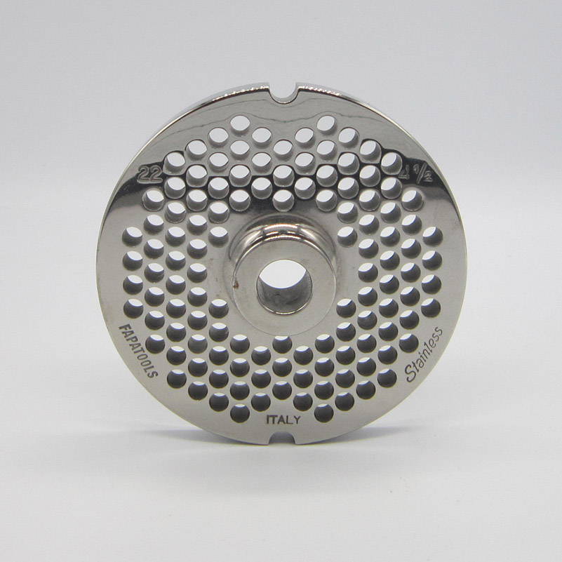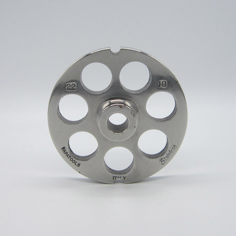 - Materiale di costruzione: L'acciaio inossidabile è il materiale prediletto per le piastre tritacarne, grazie alla sua resistenza alla corrosione, durabilità e facilità di pulizia.