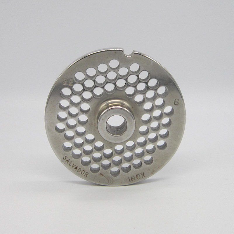 - Dimensioni dei fori: Le piastre sono disponibili con fori di varie dimensioni, permettendo di ottenere diverse consistenze di macinato. Ad esempio, fori più piccoli producono una macinazione fine, ideale per salsicce, mentre fori più grandi sono adatti per preparazioni come hamburger.