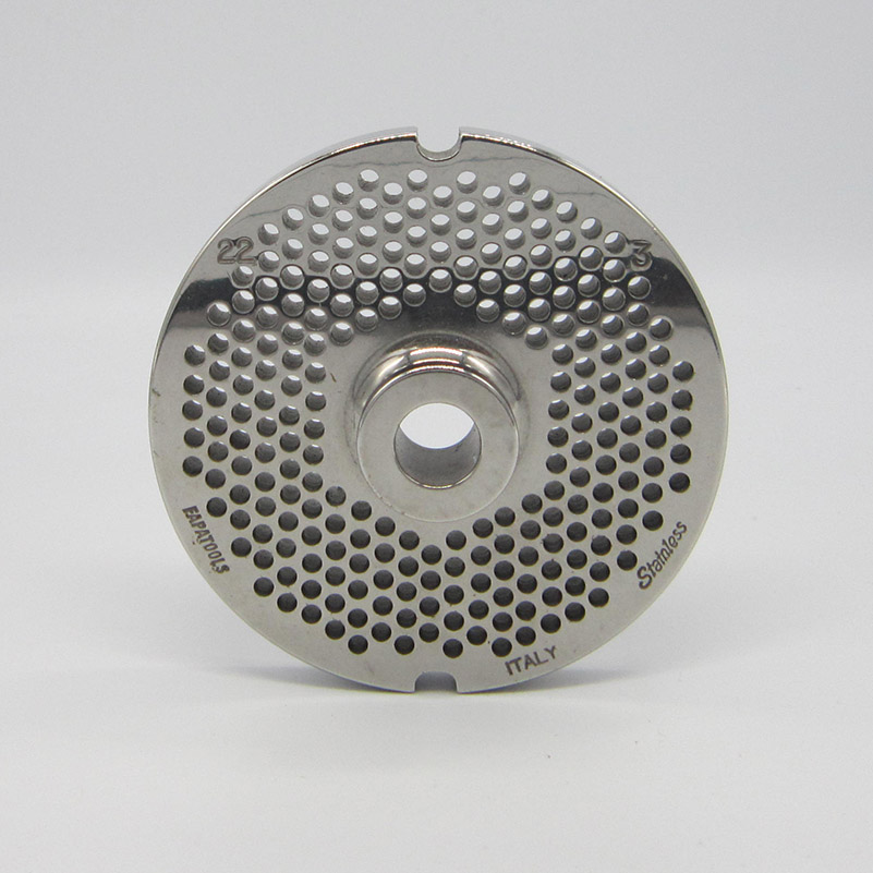 - Affilatura periodica: Un'adeguata affilatura dei bordi dei fori assicura una macinazione uniforme e riduce lo sforzo del motore del tritacarne.